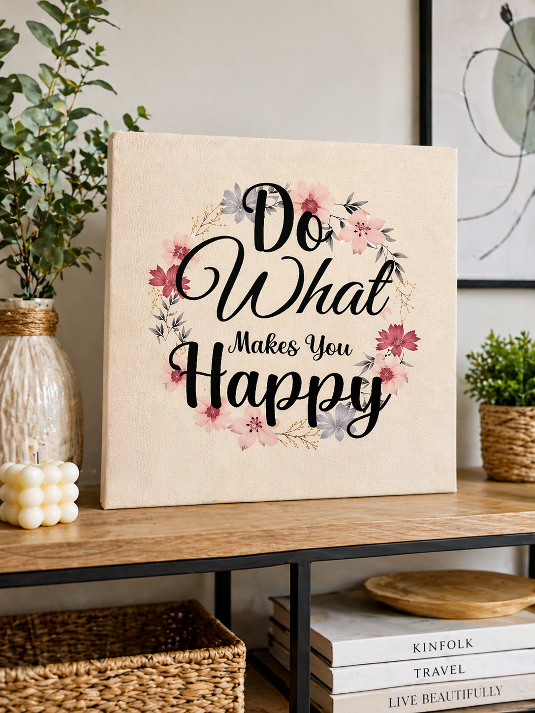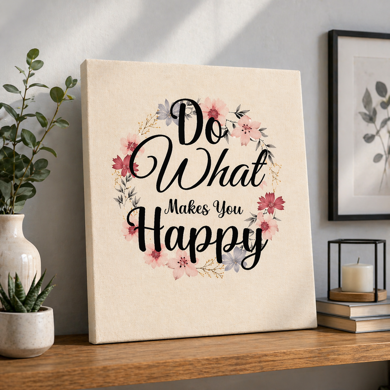 Do What Makes You Happy Card – Floral Inspirational Quote Wall & Table Decor